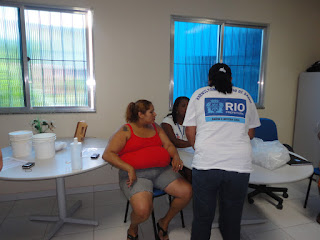 Os profissionais aferiram pressão, verificação de peso e medida.